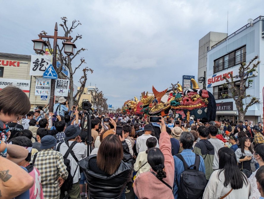 唐津くんちは江戸時代から続く唐津神社の秋季例大祭で、14台の曳山が唐津の城下町を巡行します。